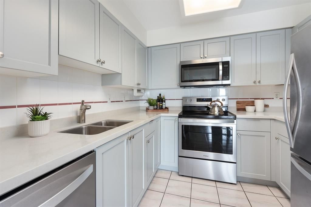 Come home to this 2 BDRM, 2 BATHROOM at THE FIFTH AVENUE. Offering an exceptional layout w/ 1,178 sf of living space, the open concept living/dining opens to a large covered balcony w/ sweeping river and city VIEWS. The updated kitchen has quartz counters, Shaker-style cabinetry and ss appl. You'll love the spacious primary bdrm w/ WIC and ensuite bath. Residents enjoy use of the outdoor pool, sauna, gym, social lounge w/ billiard table & library, Situated in the heart of New Westminster’s Uptown neighbourhood with everything on your doorstep, this condo is in a prime location within walking distance of shops, services, restaurants, parks and transit. TWO PARKING + sep storage.