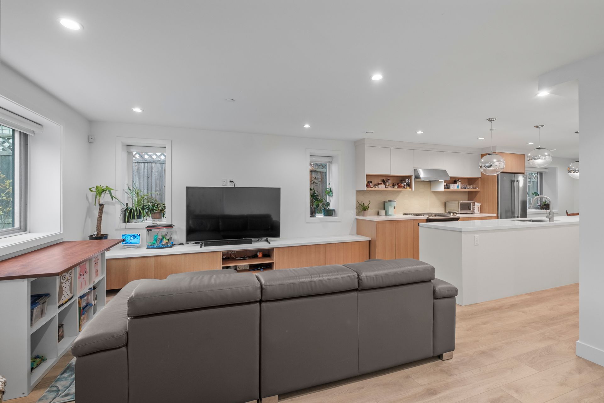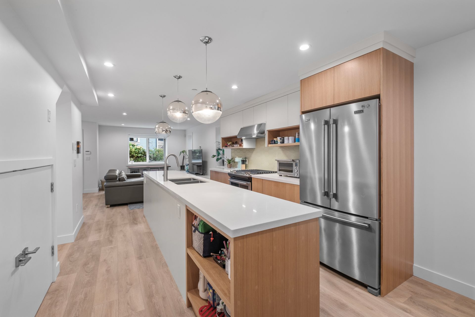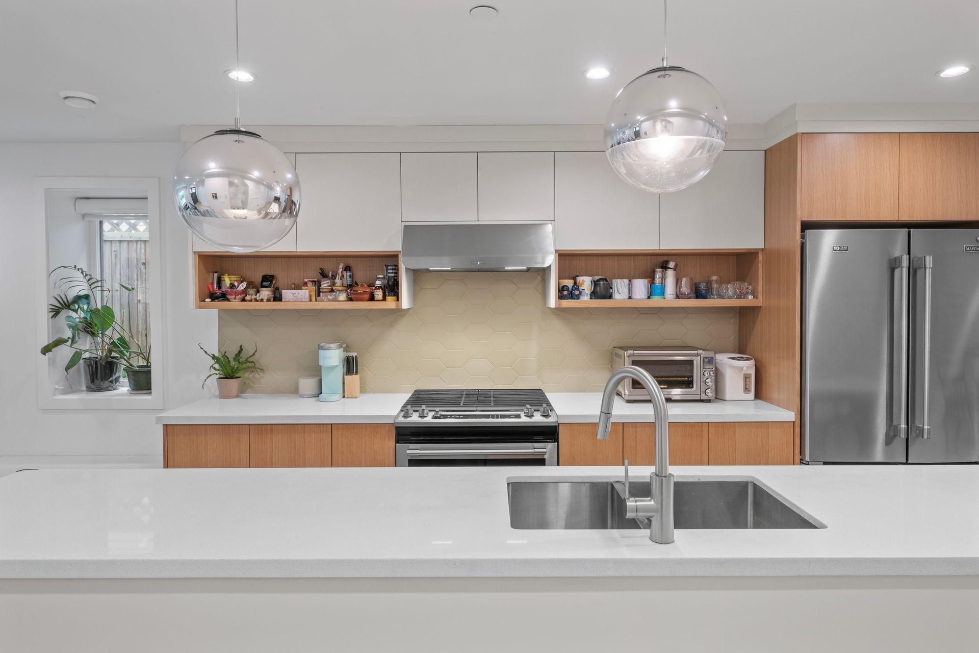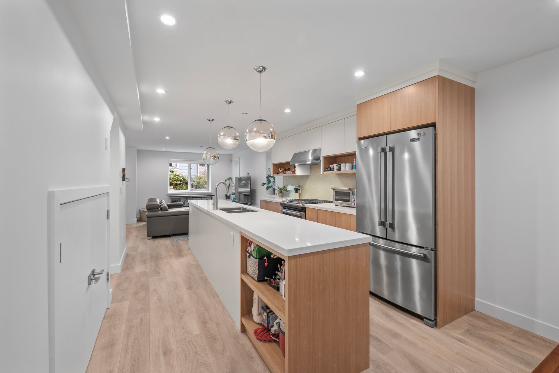 This rare TWO-level half duplex delivers – spacious & functional interior layout, private yard, modern design, charming curb appeal – all in one of Vancouver’s most loved neighbourhoods. Unlike the 3–4 level designs that chop space into tight floors, the 900+ SF main floor gives big living & full dining anchored by an enviable kitchen with 13’ island! 4 bedrooms (2 ensuite) + 3 bathrooms, this back-unit works for big families or multi-generational living. Built by award-winning VictorEric, enjoy design-forward style, radiant in-floor heating, detached garage, and a sunny south-facing yard. Built in 2019 (4 years left on warranty) on a quiet tree-lined street in Cedar Cottage, just steps to cafés, restaurants, groceries, transit, & within walking distance to Tyee & Lord Selkirk Elementary.