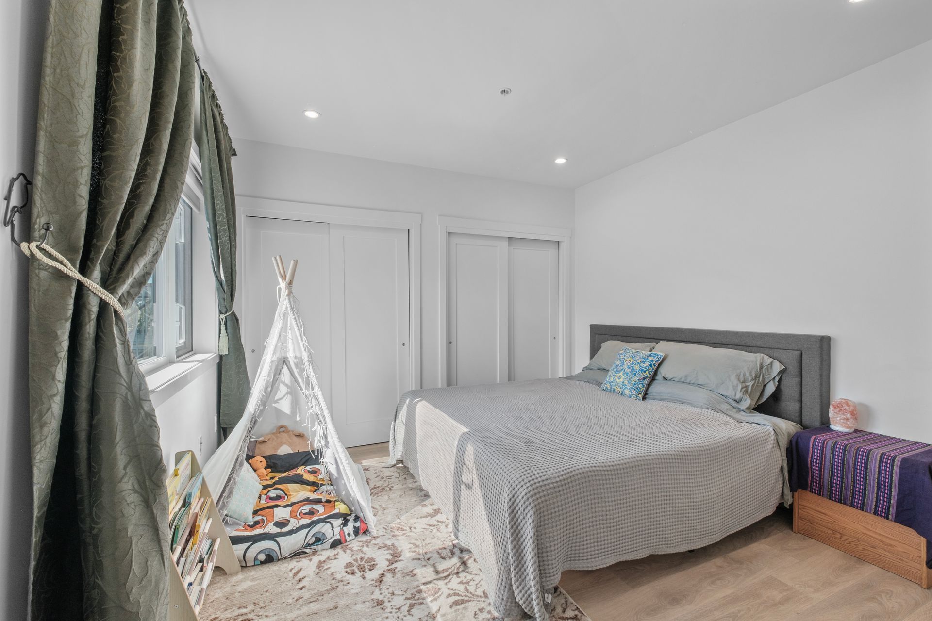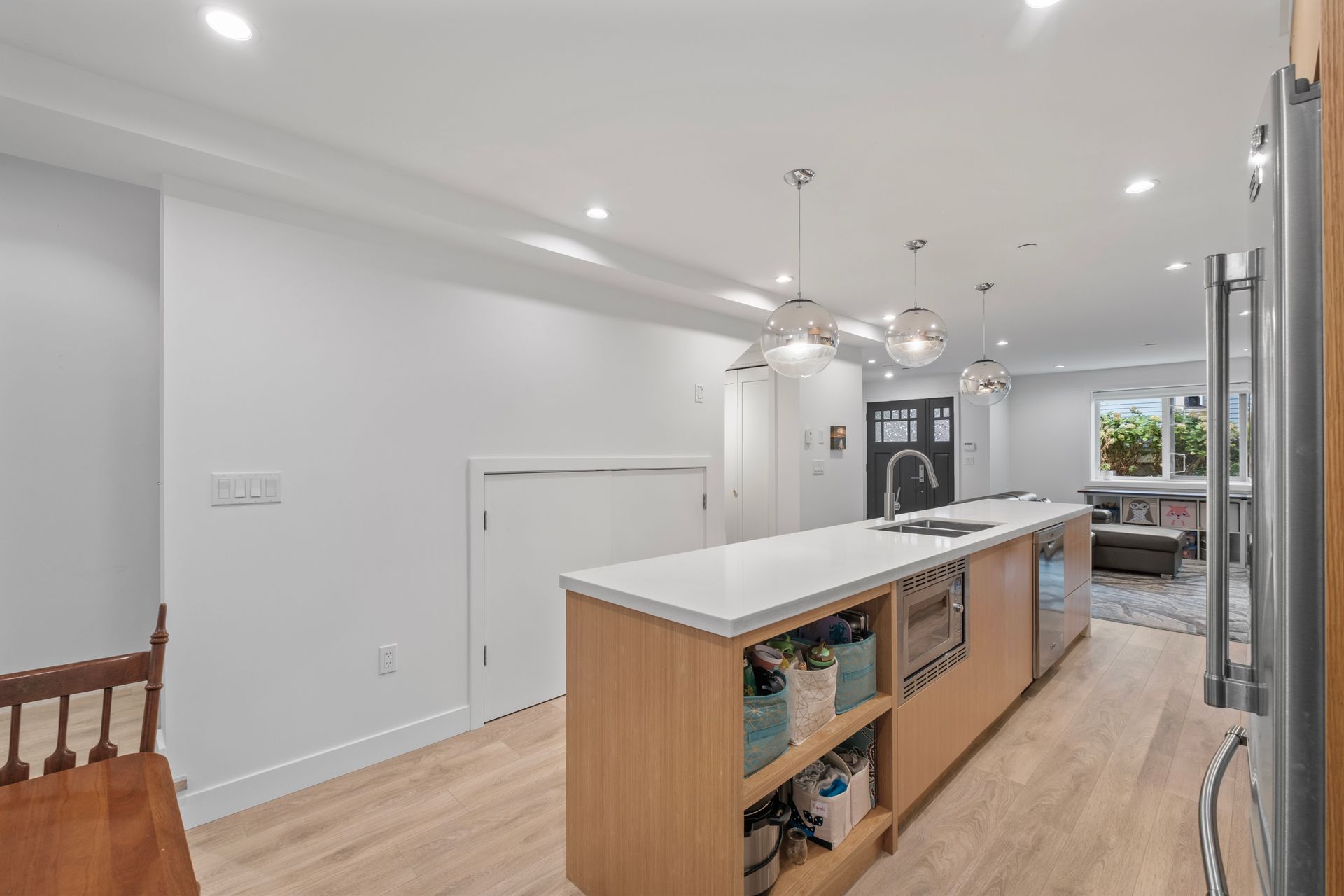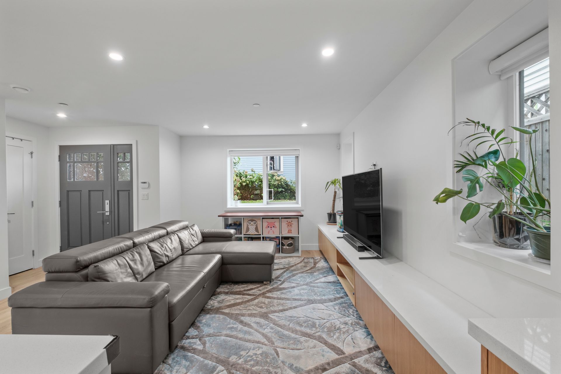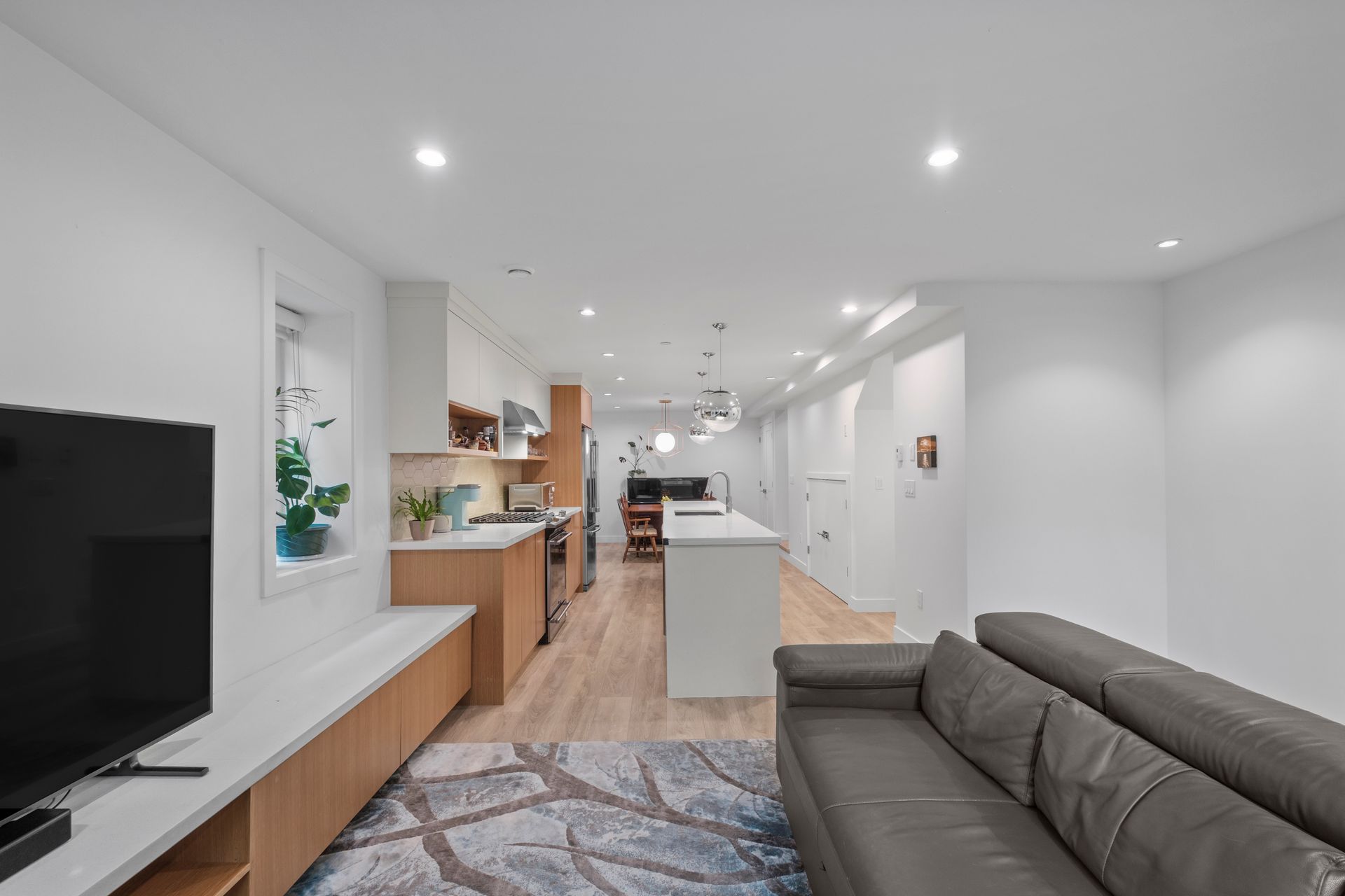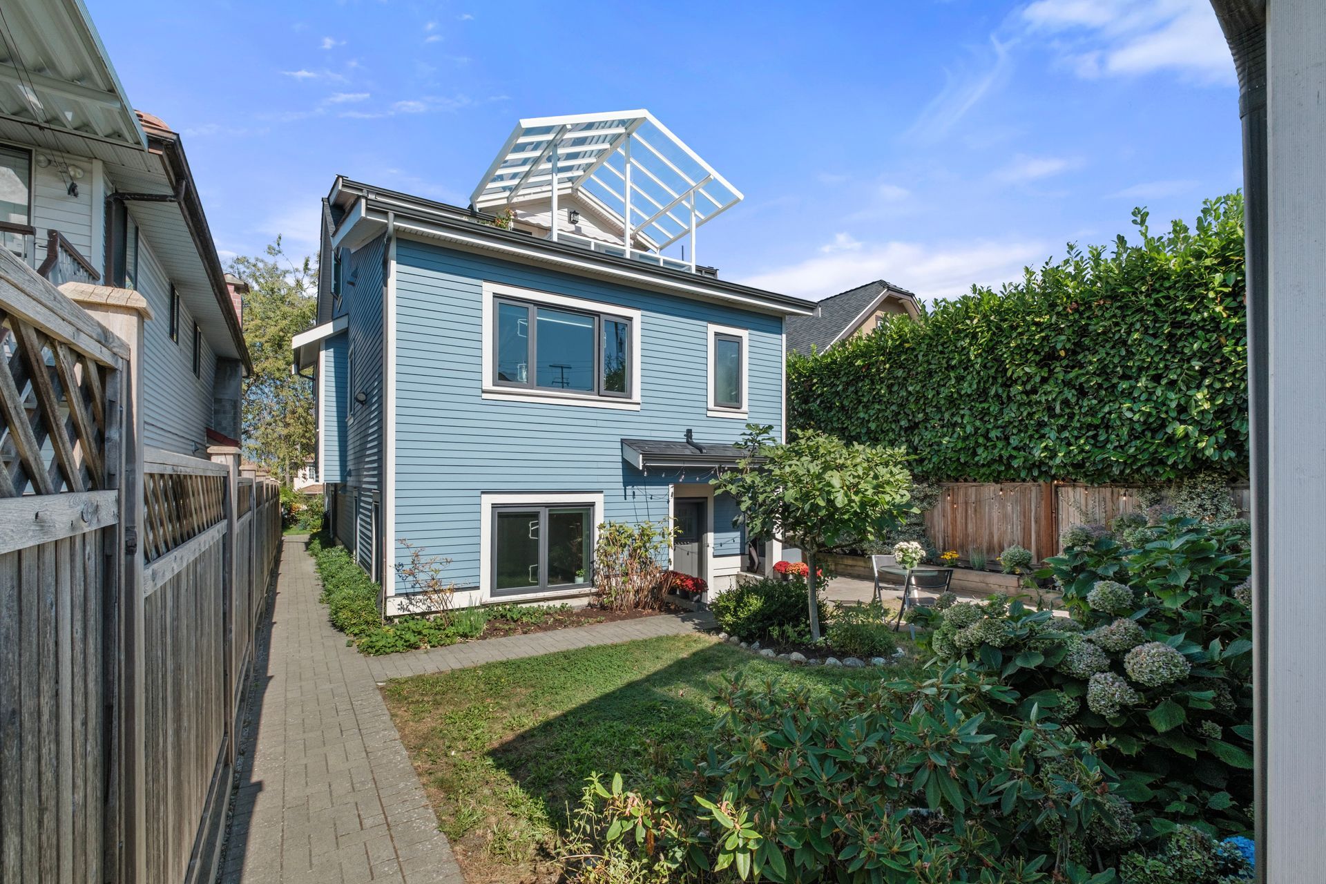 This rare TWO-level half duplex delivers – spacious & functional interior layout, private yard, modern design, charming curb appeal – all in one of Vancouver’s most loved neighbourhoods. Unlike the 3–4 level designs that chop space into tight floors, the 900+ SF main floor gives big living & full dining anchored by an enviable kitchen with 13’ island! 4 bedrooms (2 ensuite) + 3 bathrooms, this back-unit works for big families or multi-generational living. Built by award-winning VictorEric, enjoy design-forward style, radiant in-floor heating, detached garage, and a sunny south-facing yard. Built in 2019 (4 years left on warranty) on a quiet tree-lined street in Cedar Cottage, just steps to cafés, restaurants, groceries, transit, & within walking distance to Tyee & Lord Selkirk Elementary.