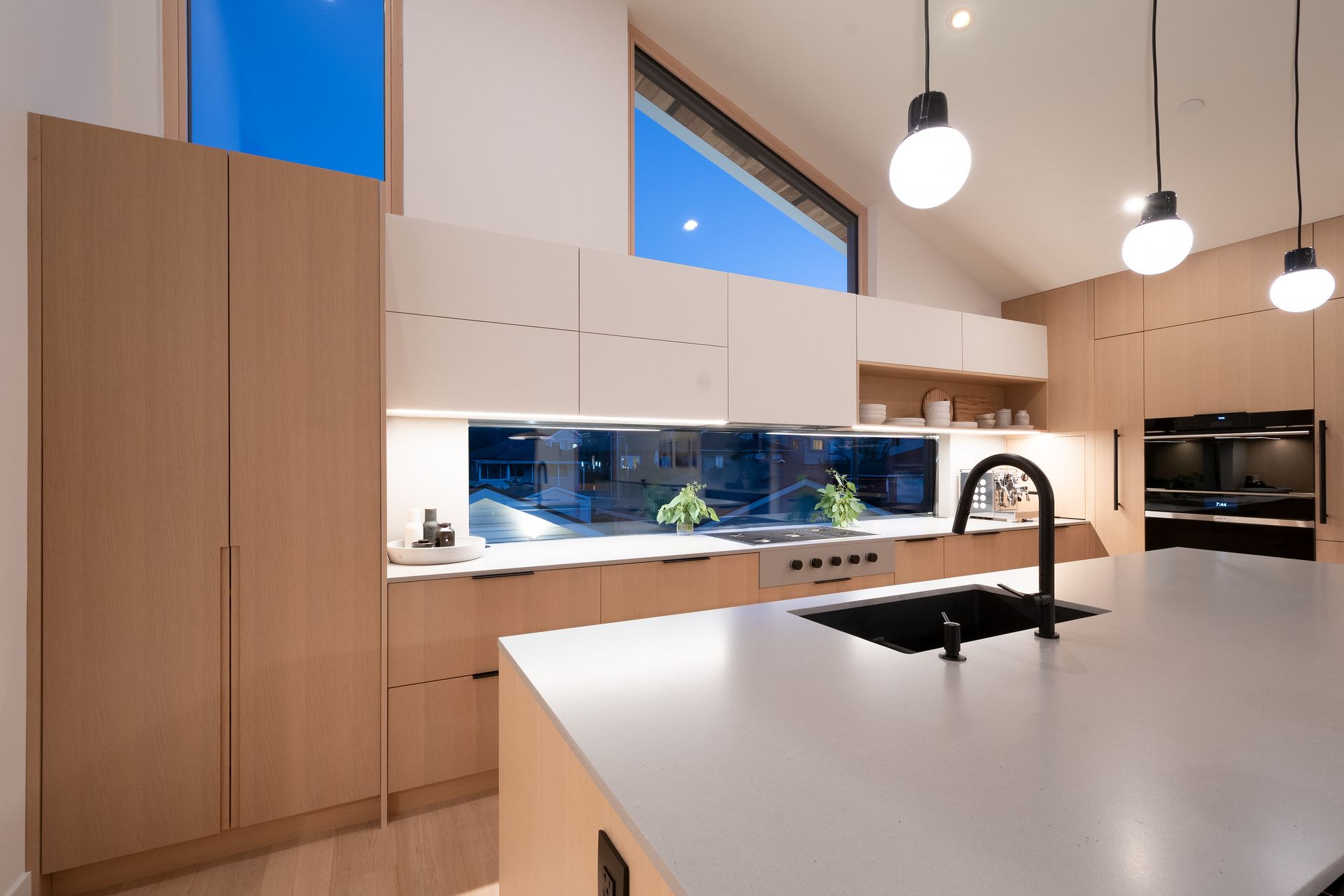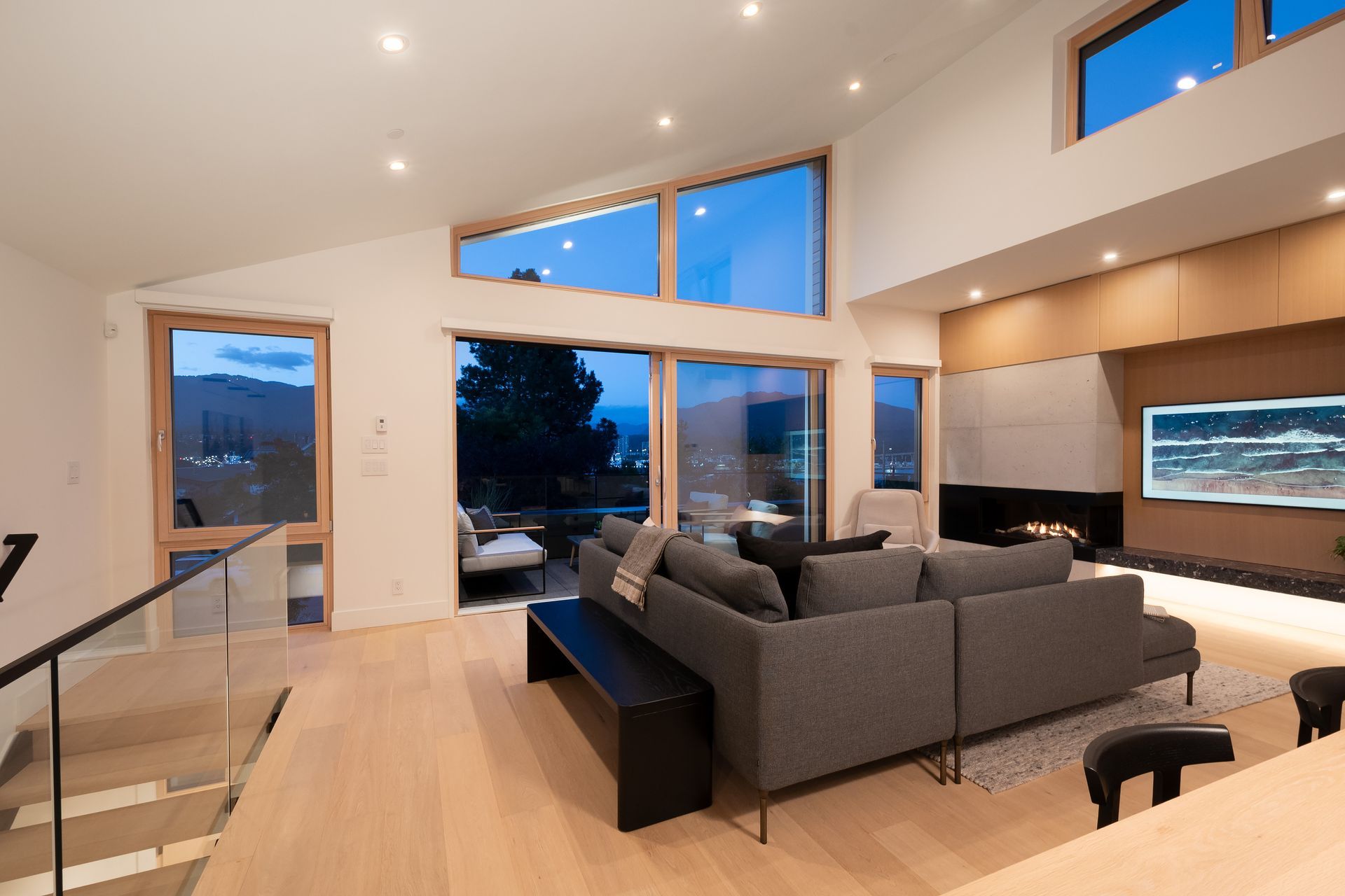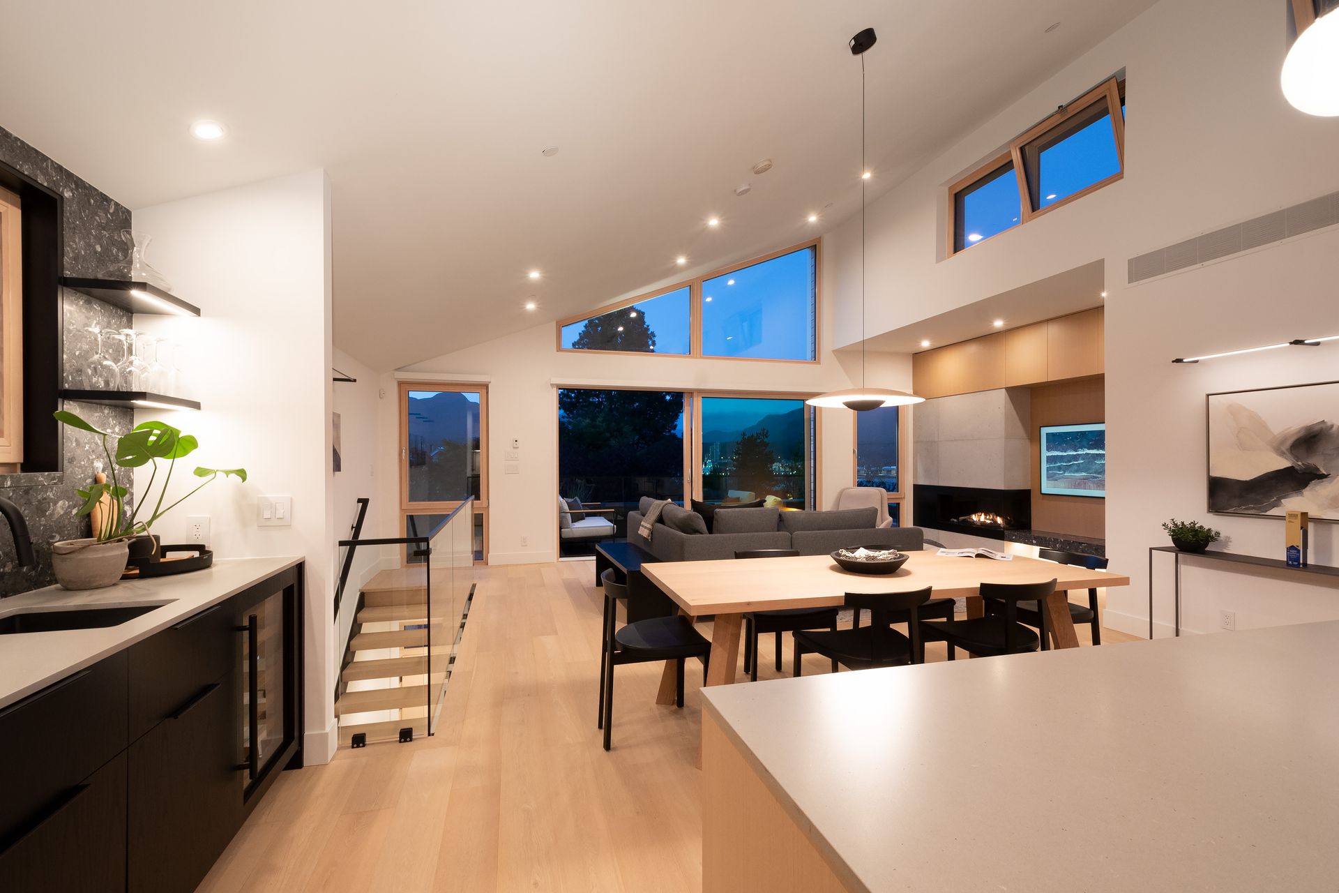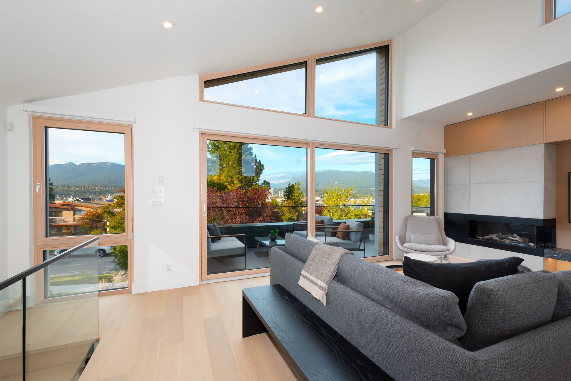 Nick Bray’s architectural work of art & Ami McKay’s stunning modern interior design created this HAVAN award-winning masterpiece of a home. Boasting 15-ft ceilings with massive triple-glazed wood windows, this energy efficient home is flooded with natural light from all directions. With remarkable views of the Burrard inlet & mountains this home offers 3106 sq ft of thoughtful design. In floor radiant heat A/C gas fireplace 5 bed 4.5 bath, white oak floors and cabinetry throughout. Sub Zero fridge and wine fridge, Wolf 5 burner gas cook top, wall oven, and convection steam oven. With a south facing back yard north facing view deck and 2 bd/2bath mortgage helper there were absolutely no expenses spared, you will not want to miss this one!