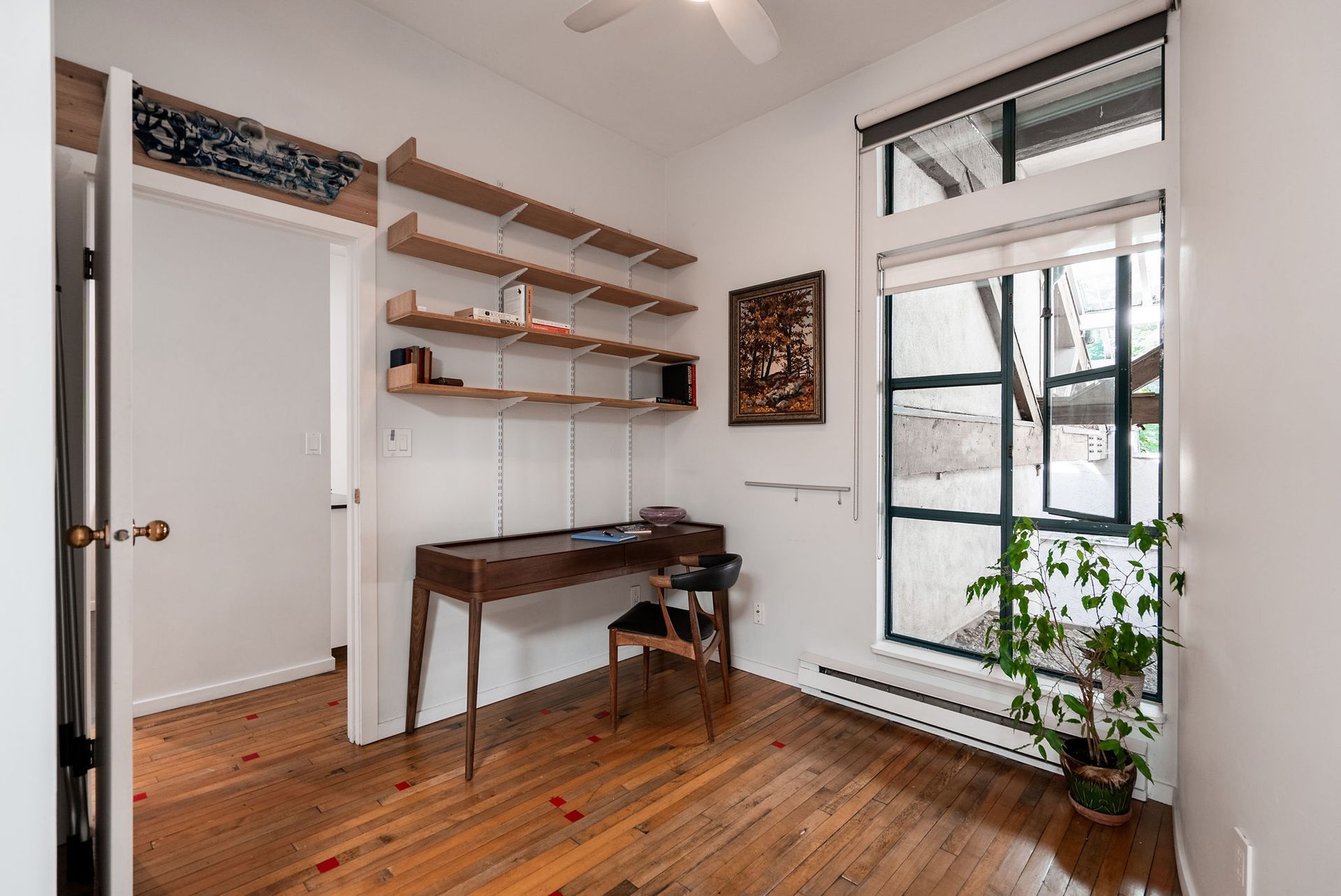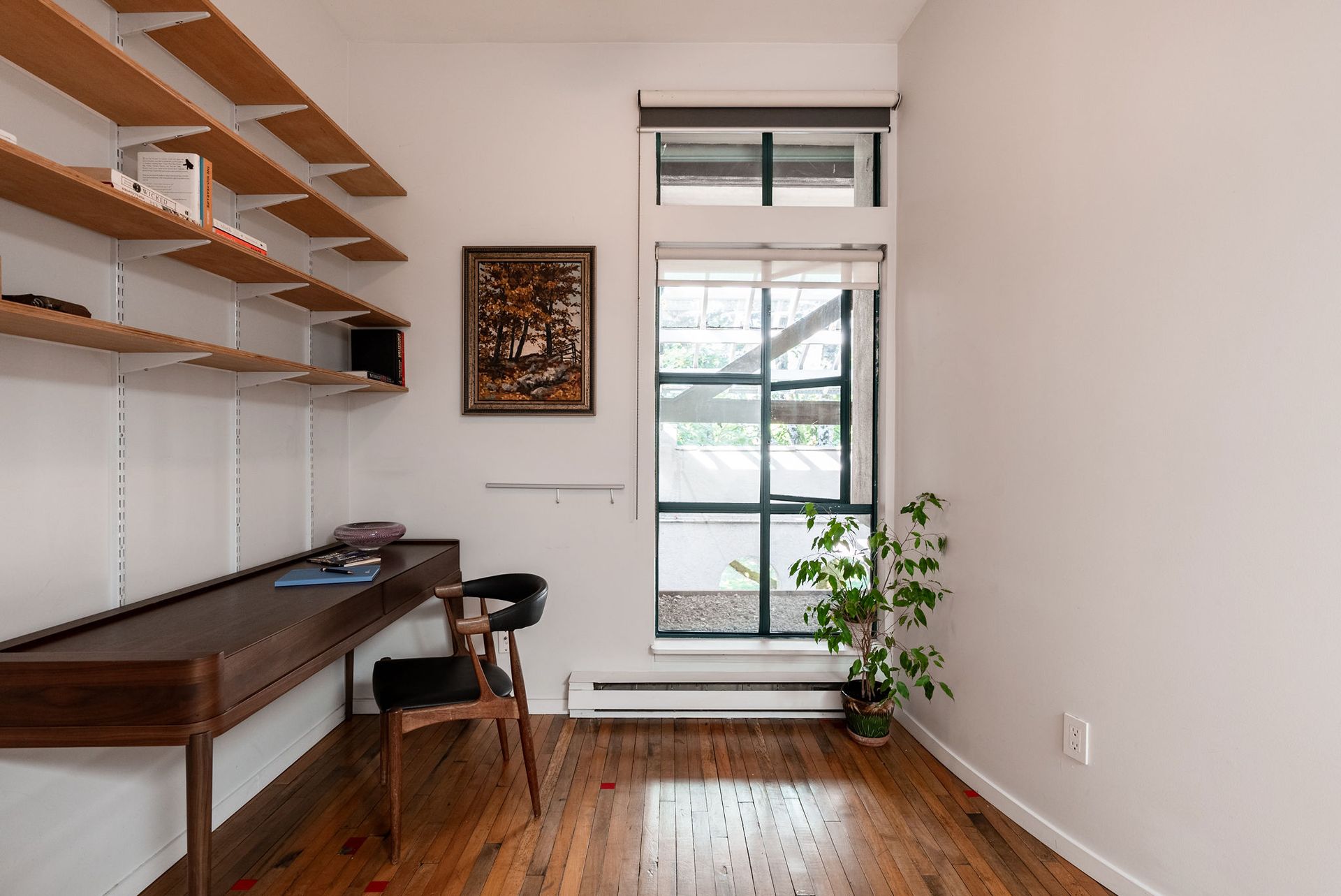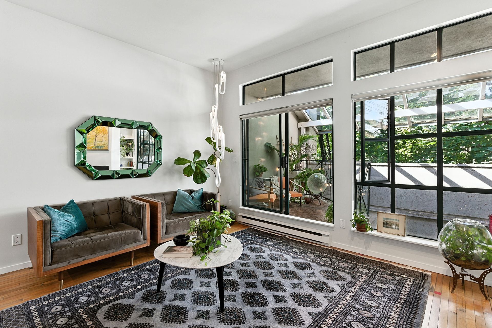 Penthouse living in a special landmark conversion. Once Vancouver’s first synagogue (1911), unit 303 at Alexander Court blends heritage character with modern design. This fully renovated home offers 9’8” ceilings, reclaimed gym flooring, Bocci lighting, a wood-burning fireplace & sleek built-ins. 4 skylights (2 operable) and full-span west windows pull in light and air. The bedroom’s smart, flexible layout is ideal for home office, hobby, or 2nd sleeping space. Weather-protected balcony feels like a treehouse escape. Steps to MacLean Park, Strathcona Community Centre, Railtown studios, award-winning dining at Kissa Tanto or Barbara, & area faves like Finch’s. Vancouver’s first neighbourhood where community is palpable. Walk up – NO elevator. In-suite laundry, 1 parking & 1 storage.