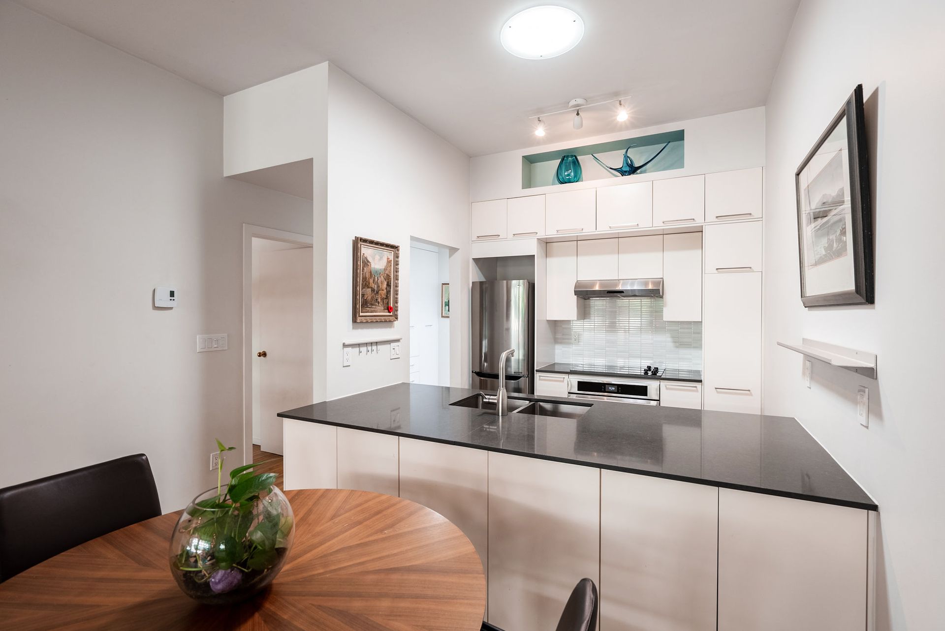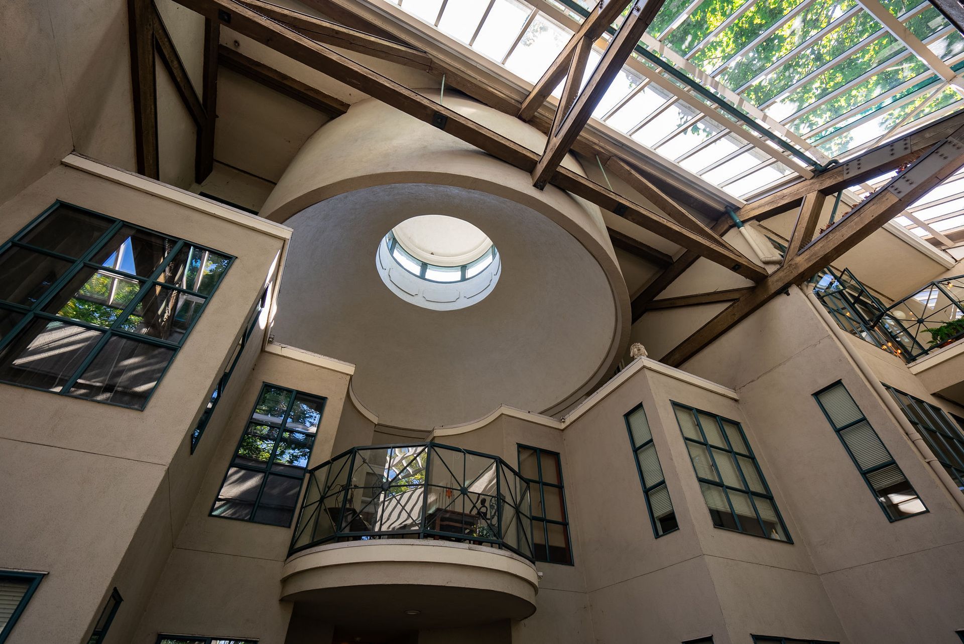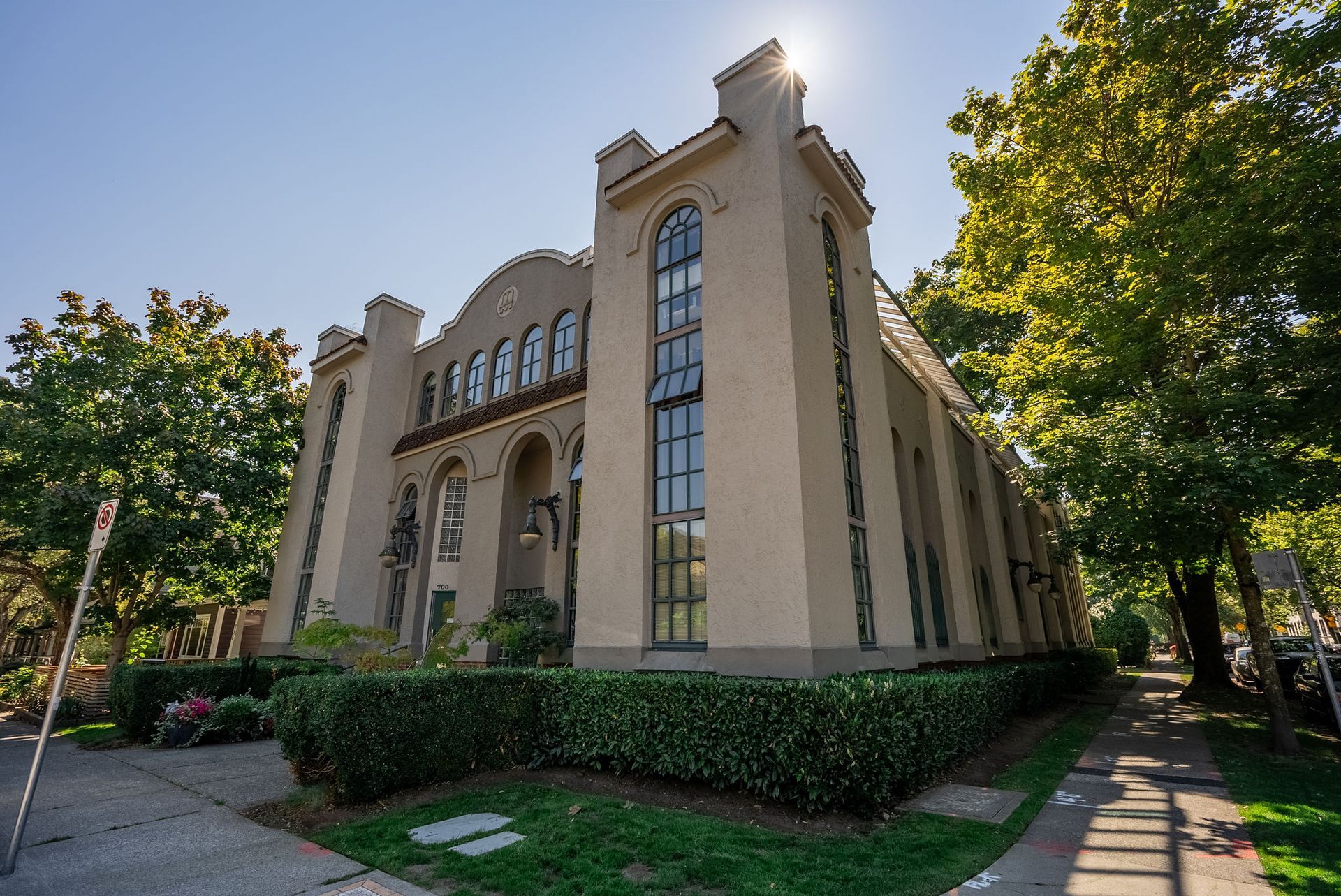 Penthouse living in a special landmark conversion. Once Vancouver’s first synagogue (1911), unit 303 at Alexander Court blends heritage character with modern design. This fully renovated home offers 9’8” ceilings, reclaimed gym flooring, Bocci lighting, a wood-burning fireplace & sleek built-ins. 4 skylights (2 operable) and full-span west windows pull in light and air. The bedroom’s smart, flexible layout is ideal for home office, hobby, or 2nd sleeping space. Weather-protected balcony feels like a treehouse escape. Steps to MacLean Park, Strathcona Community Centre, Railtown studios, award-winning dining at Kissa Tanto or Barbara, & area faves like Finch’s. Vancouver’s first neighbourhood where community is palpable. Walk up – NO elevator. In-suite laundry, 1 parking & 1 storage.