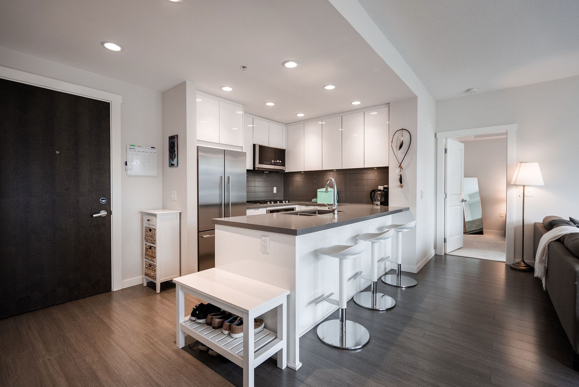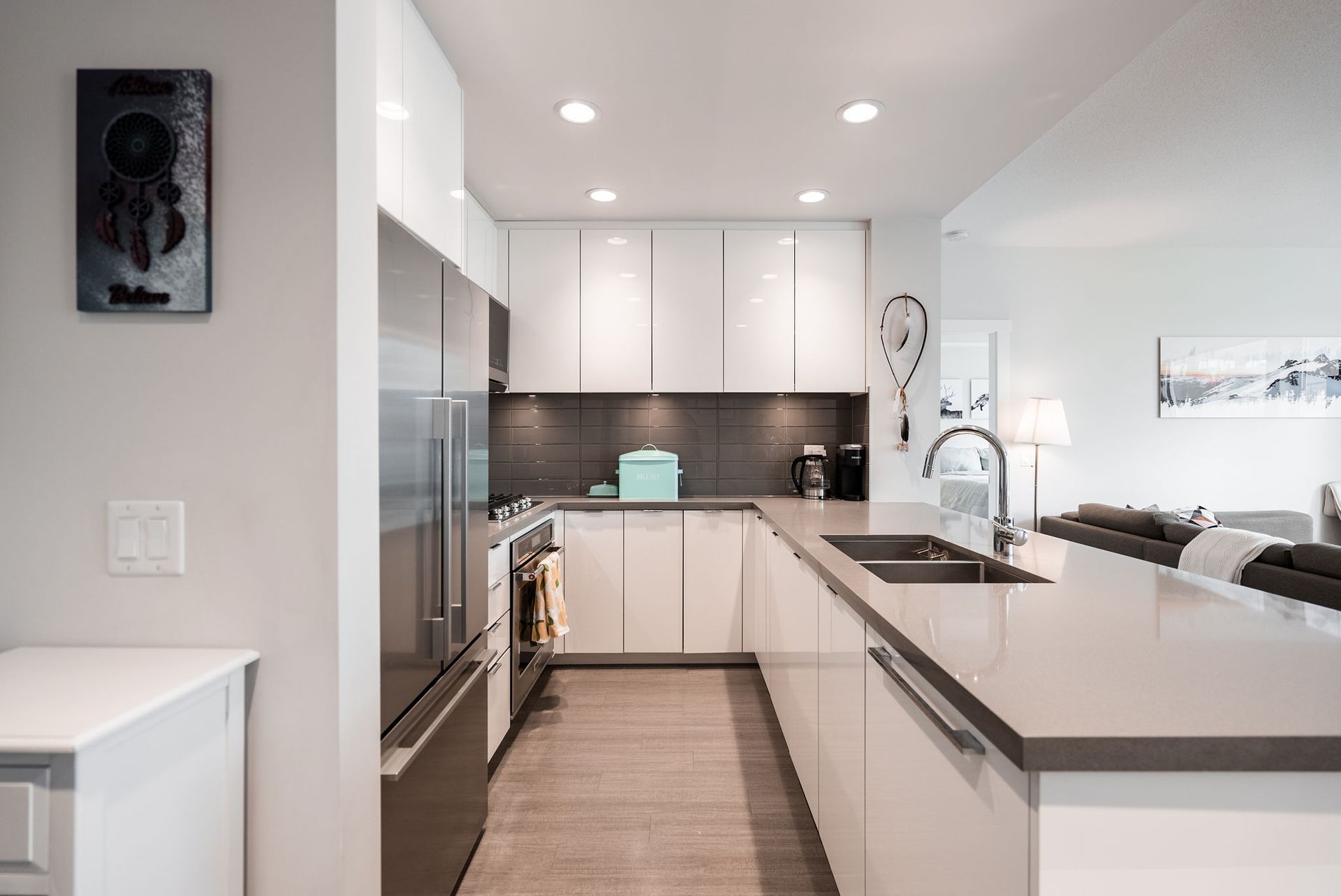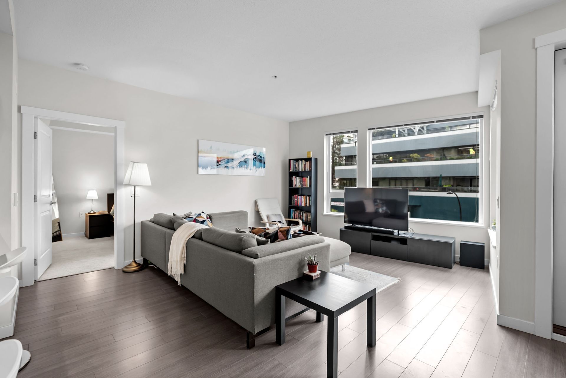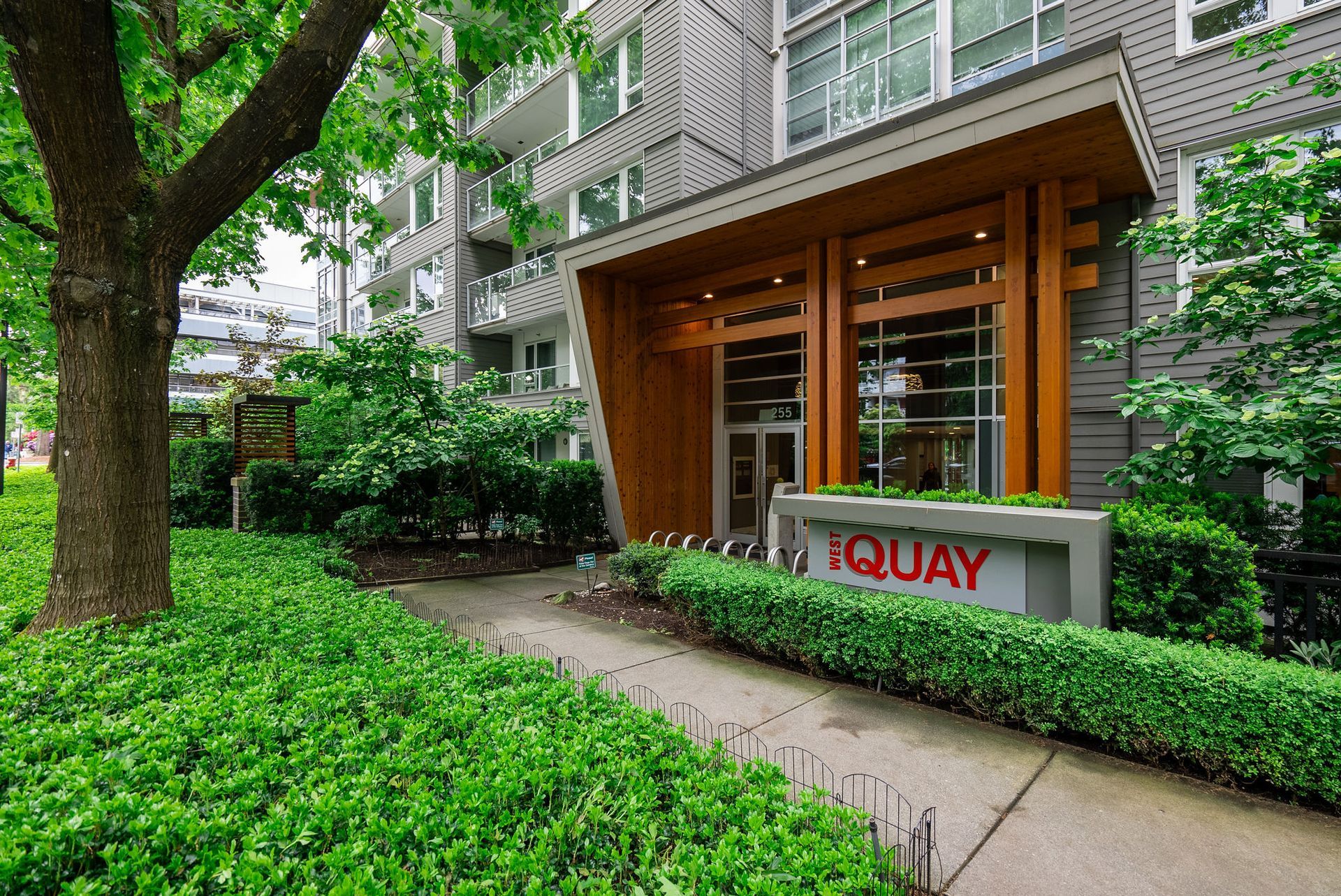 Welcome to West Quay by Polygon, located in vibrant Lower Lonsdale, one of North Vancouver’s most sought-after waterfront communities. This 2 bed/bath home offers a smart layout w/ bedrooms on opposite sides. The spacious primary suite features a walk-in closet & spa-inspired ensuite with double sinks, quartz counters, and glass shower. Enjoy open concept living with a chef’s kitchen, gas range, quartz counters, & SS appliances. The bright living/dining area opens to a balcony with city views, peek-a-boo water views, & a sightline to Waterfront Park. Situated on a charming, tree-lined street, you’re just steps to the SeaBus, the Quay, parks, transit, cafés, & trendy shops & restaurants. Amenities include gym & garden terrace. Pets welcome. 1 parking + large double-height storage included.