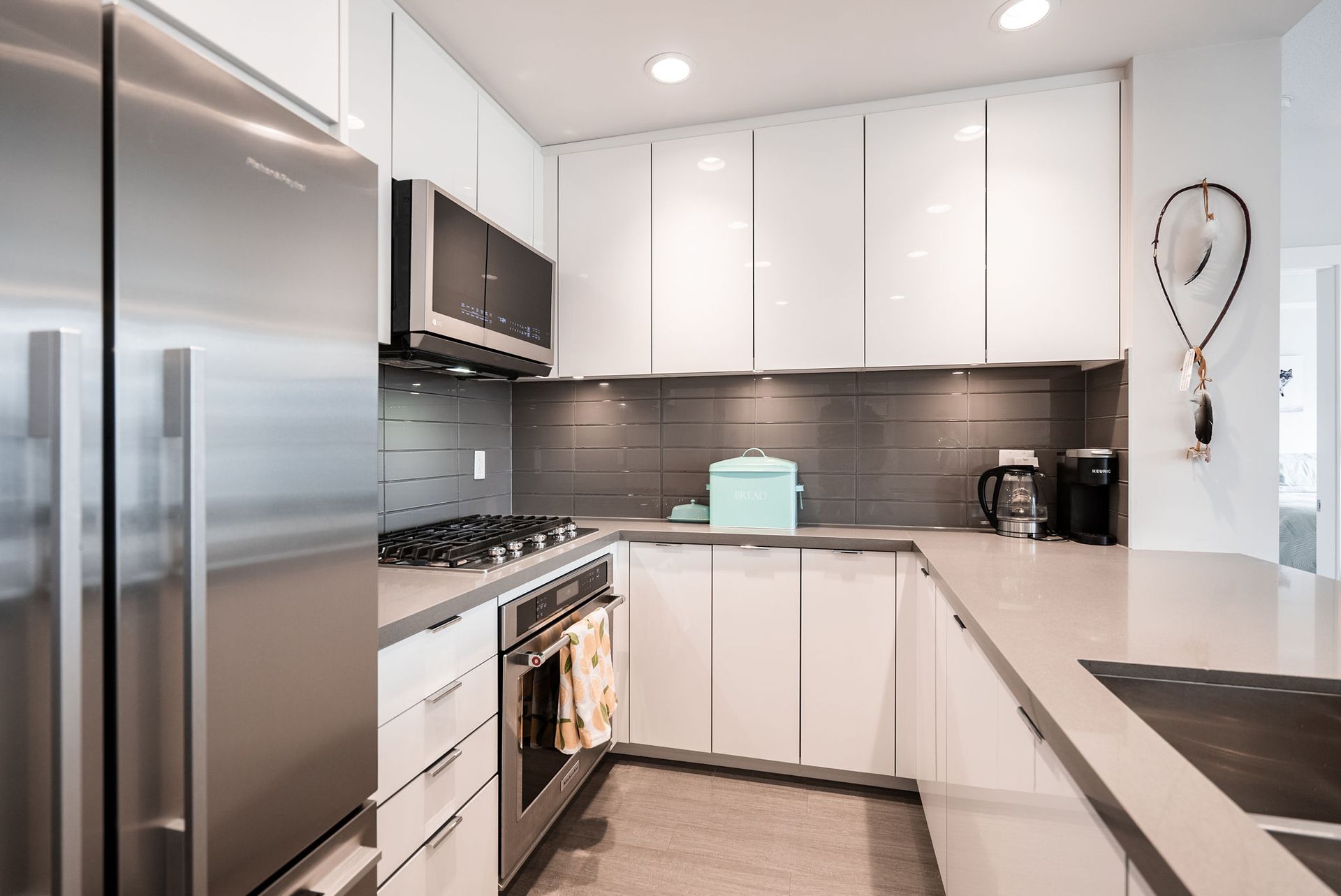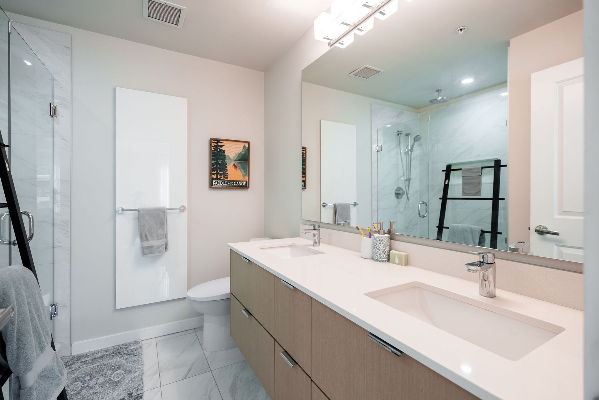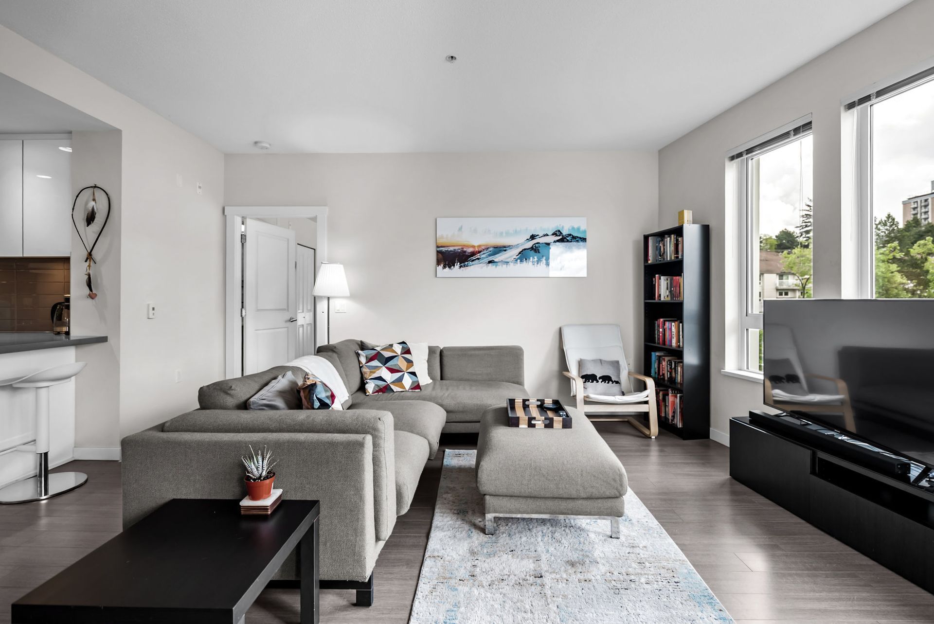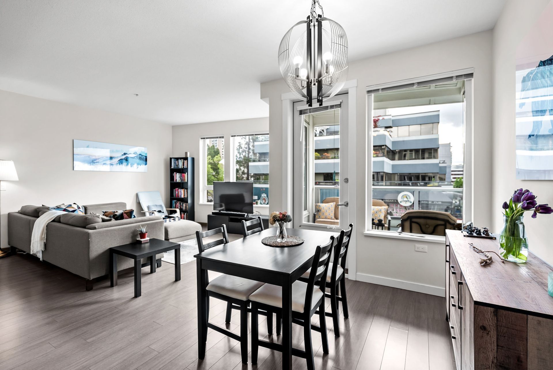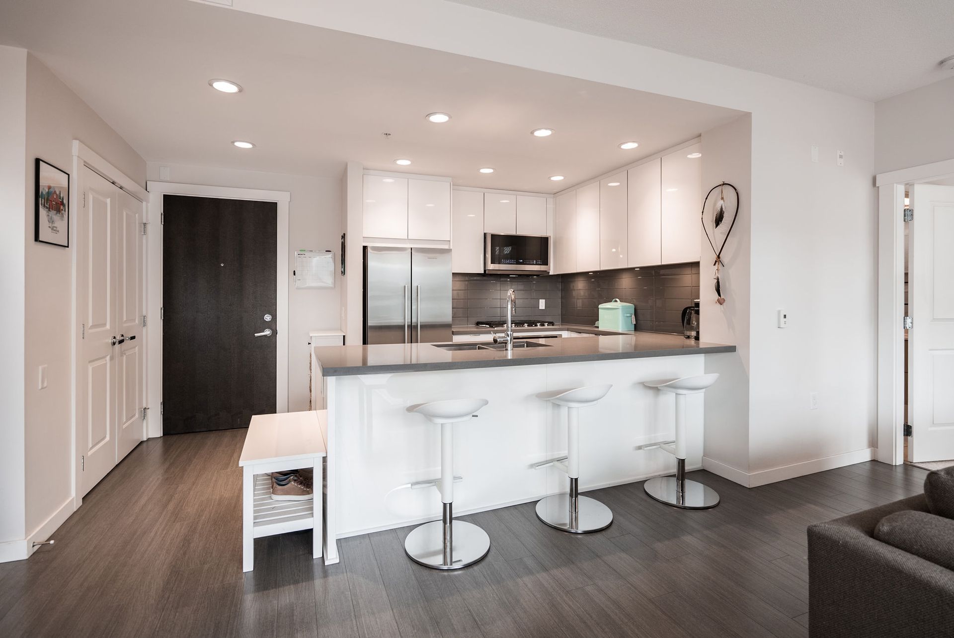 Welcome to West Quay by Polygon, located in vibrant Lower Lonsdale, one of North Vancouver’s most sought-after waterfront communities. This 2 bed/bath home offers a smart layout w/ bedrooms on opposite sides. The spacious primary suite features a walk-in closet & spa-inspired ensuite with double sinks, quartz counters, and glass shower. Enjoy open concept living with a chef’s kitchen, gas range, quartz counters, & SS appliances. The bright living/dining area opens to a balcony with city views, peek-a-boo water views, & a sightline to Waterfront Park. Situated on a charming, tree-lined street, you’re just steps to the SeaBus, the Quay, parks, transit, cafés, & trendy shops & restaurants. Amenities include gym & garden terrace. Pets welcome. 1 parking + large double-height storage included.