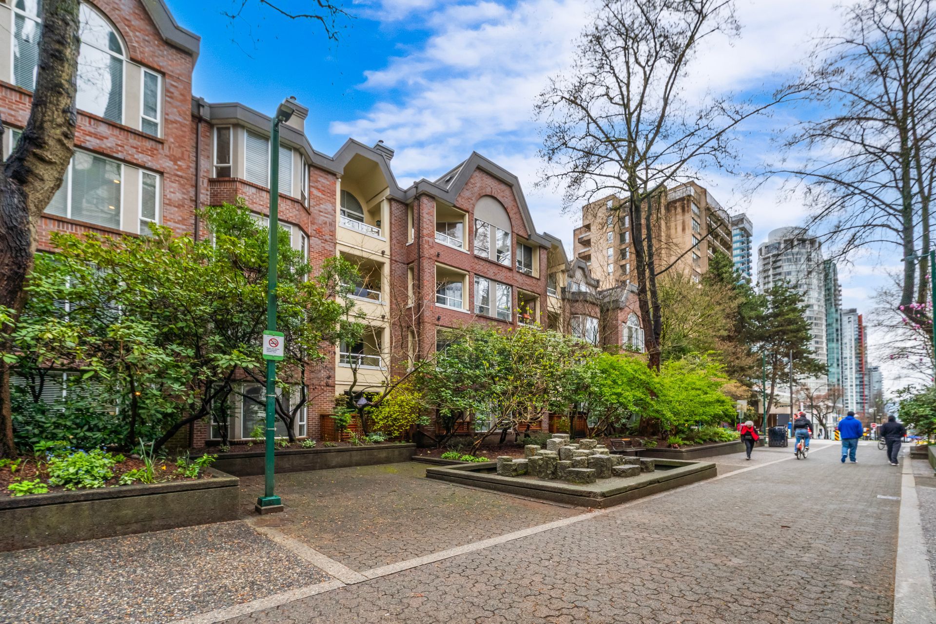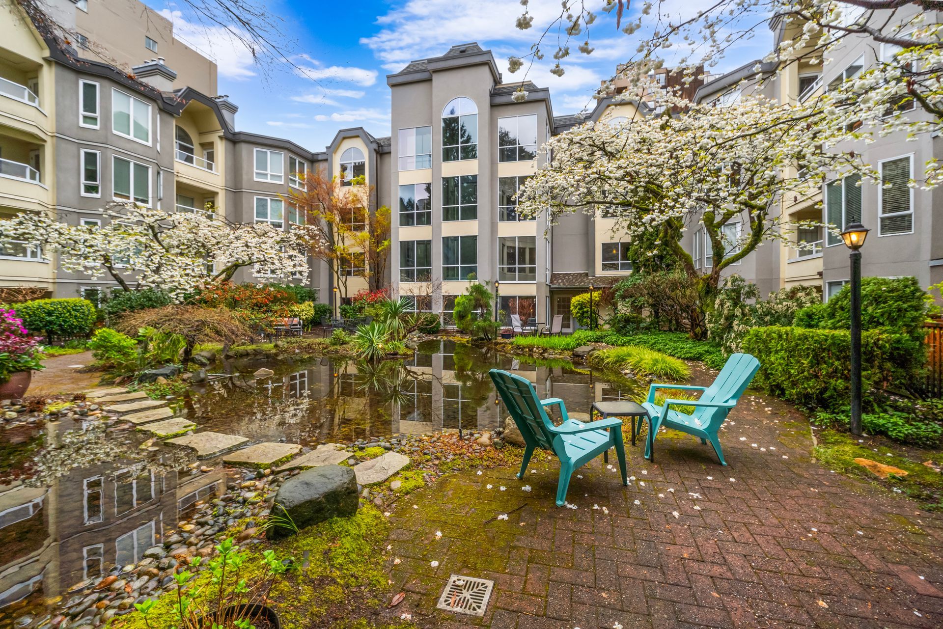 COMMERCIAL DRIVE ENERGY outside, serenity inside. This QUIET-SIDE home in Marquee’s rare CONCRETE LOW-RISE, anchored by its OVERSIZED PATIO, delivers location, lifestyle & livability. Open-concept with 9’ ceilings offers great flow: generous living, big dining for table or combo work-eat island, and kitchen with gas range & full-size appliances. Separated bedrooms, two full bathrooms, and a versatile flex room for storage or extra work space. The standout: an oversized 184 SF patio - think outdoor dining, container gardening, or simply more room to live. Heat pump installation allowed & EV charging in the garage. Cafés, markets, and SkyTrain just a block away. Come live life on the Drive, a connected community where everything is at your doorstep, and your home is your retreat.