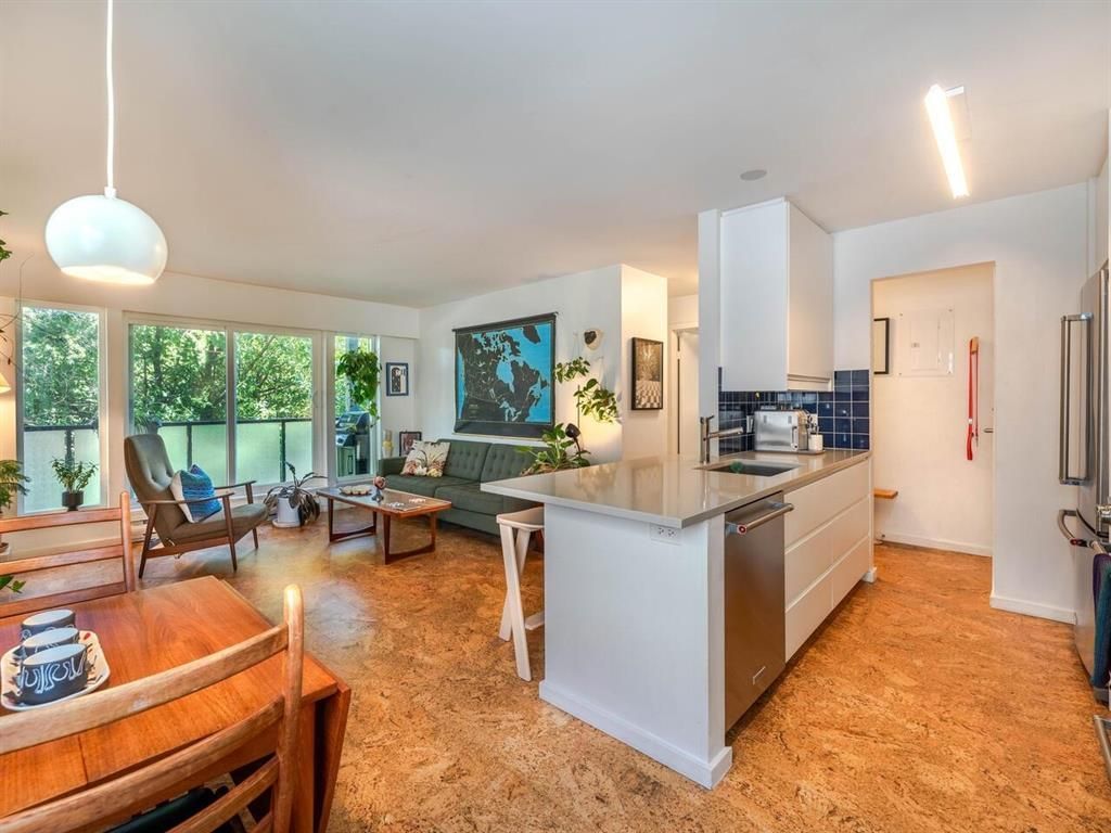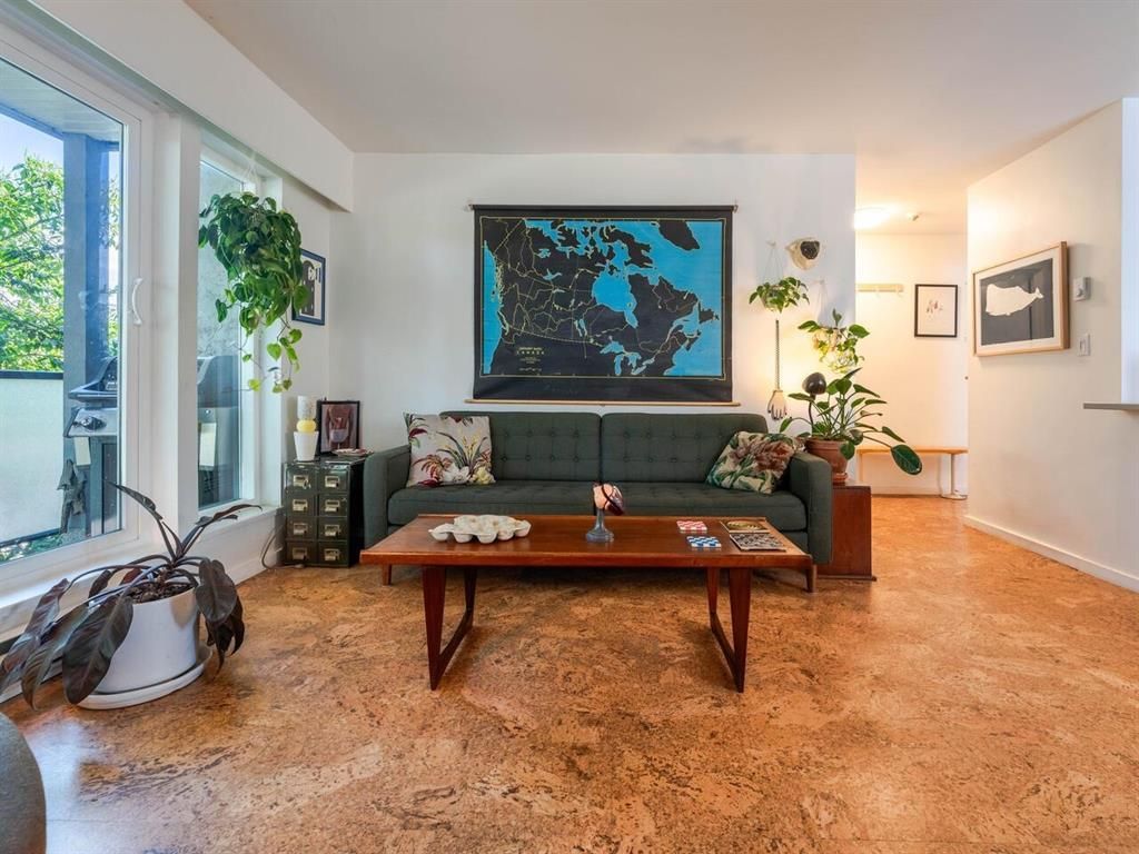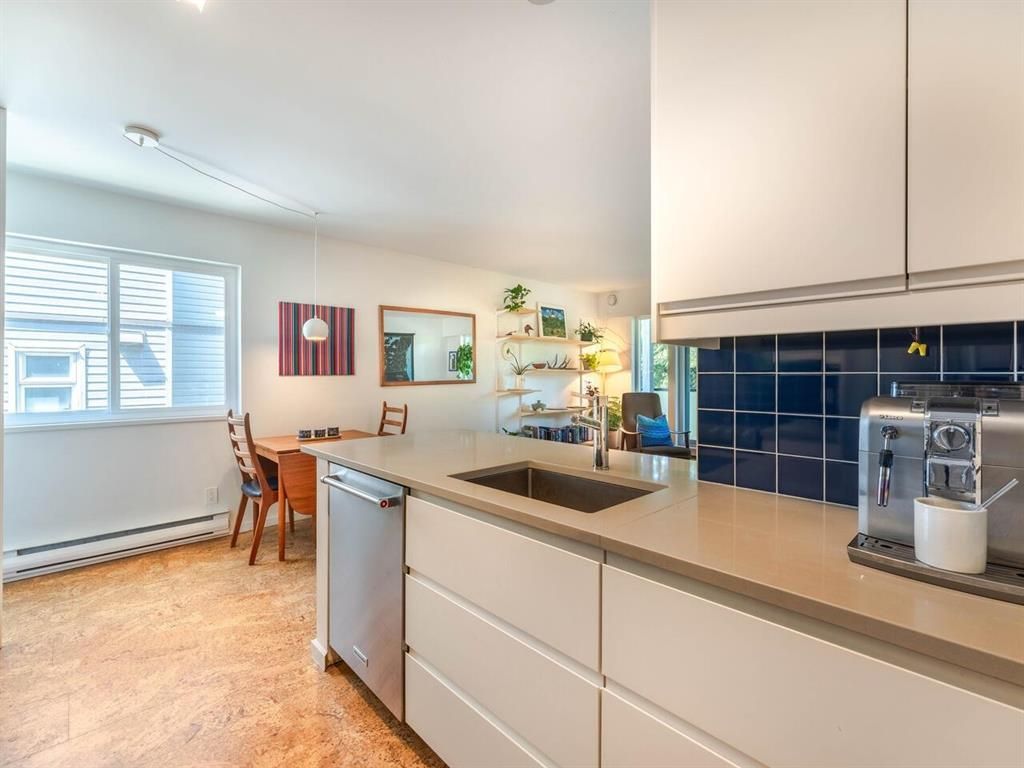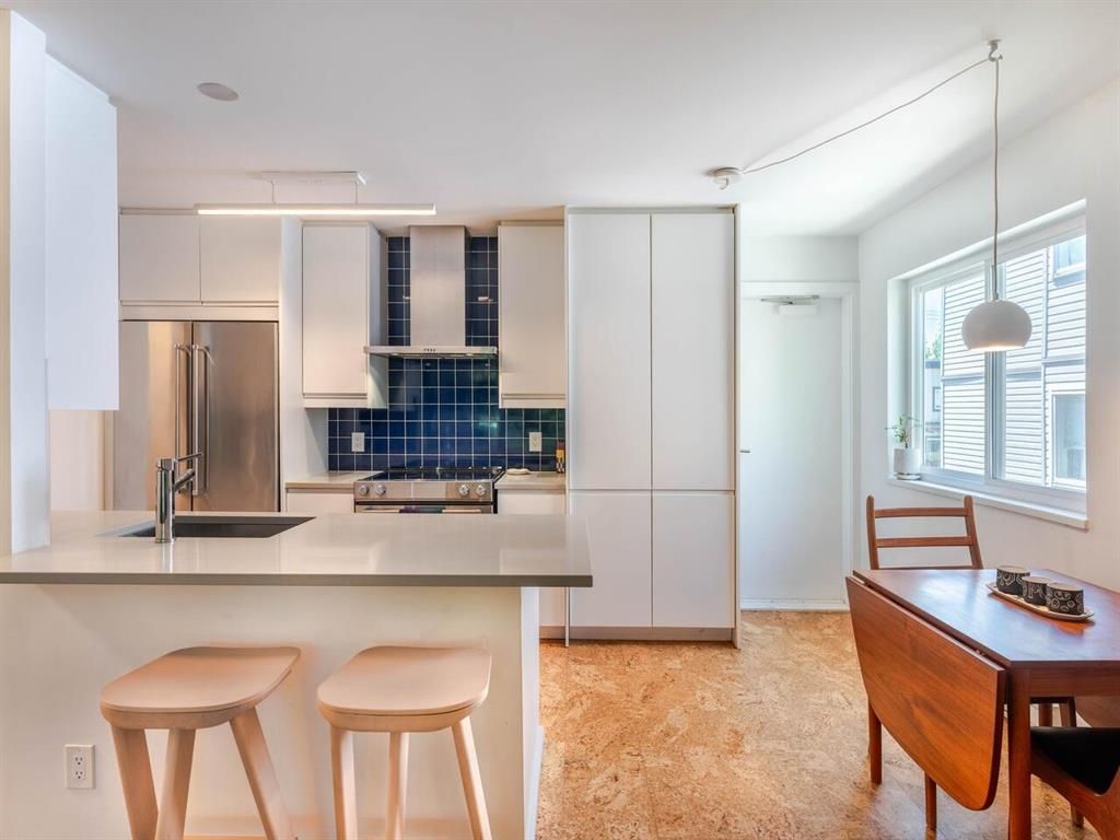 Beautifully designed & completely renovated this 2 bed, 1 bath is a delight. Featuring cork floors, in-suite laundry, windows on 3 sides, a treed outlook & no shared walls. The filtered light is beautiful & it’s very private. A 3 storey walk-up, this building is in great shape - windows, roof, balconies, painted (inside & out) & carpets all done within the last few years. A friendly group of neighbours doing a great job running it. Pets are welcome. Pandora Park is just a a couple of blocks away as are some of the best restaurants in Vancouver. Transit, walkability & bikeabilty are all high. Easy access to downtown, the North Shore & highway. A pleasure to show.