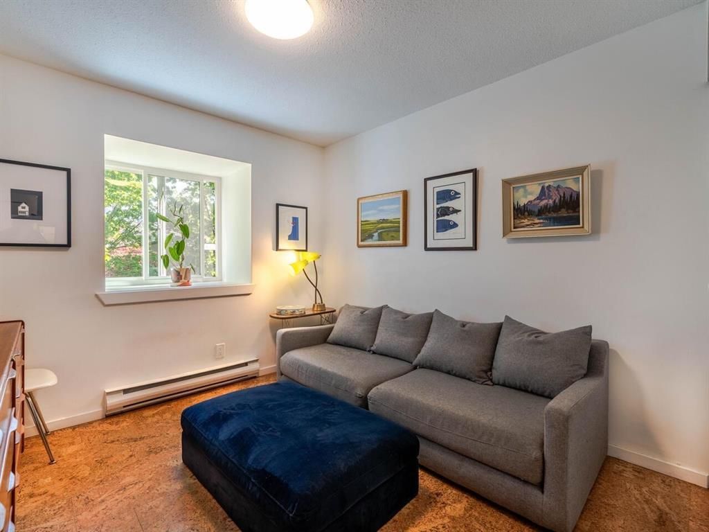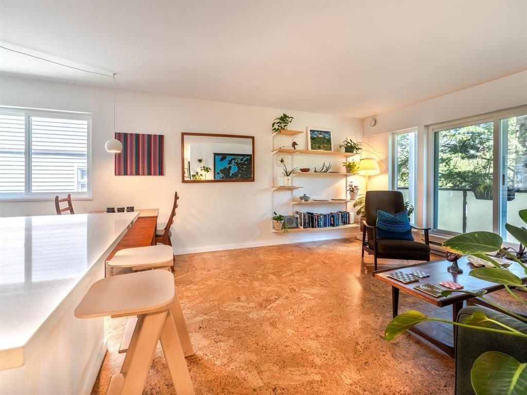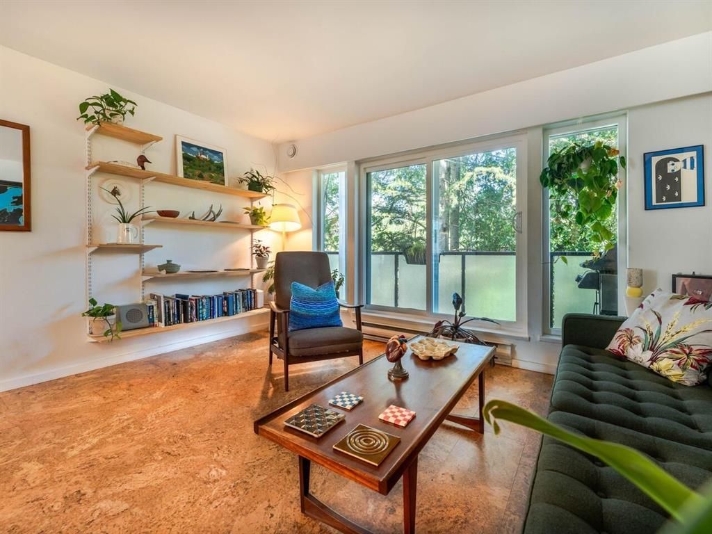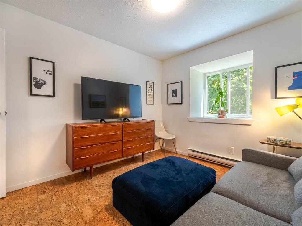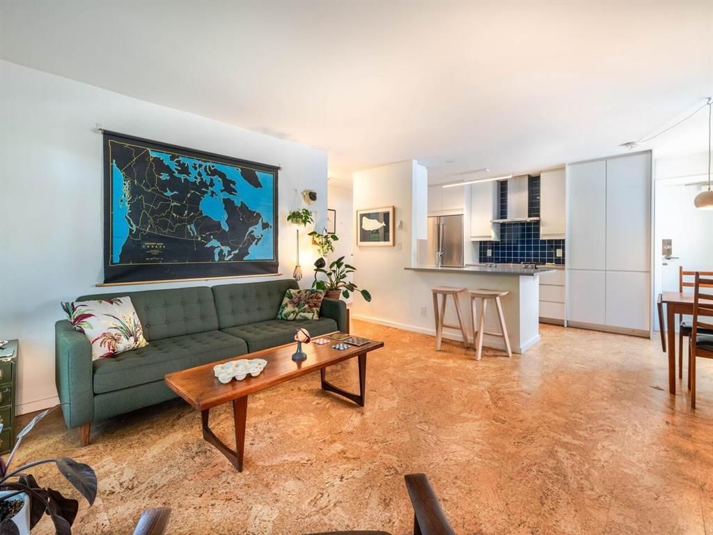 Beautifully designed & completely renovated this 2 bed, 1 bath is a delight. Featuring cork floors, in-suite laundry, windows on 3 sides, a treed outlook & no shared walls. The filtered light is beautiful & it’s very private. A 3 storey walk-up, this building is in great shape - windows, roof, balconies, painted (inside & out) & carpets all done within the last few years. A friendly group of neighbours doing a great job running it. Pets are welcome. Pandora Park is just a a couple of blocks away as are some of the best restaurants in Vancouver. Transit, walkability & bikeabilty are all high. Easy access to downtown, the North Shore & highway. A pleasure to show.
