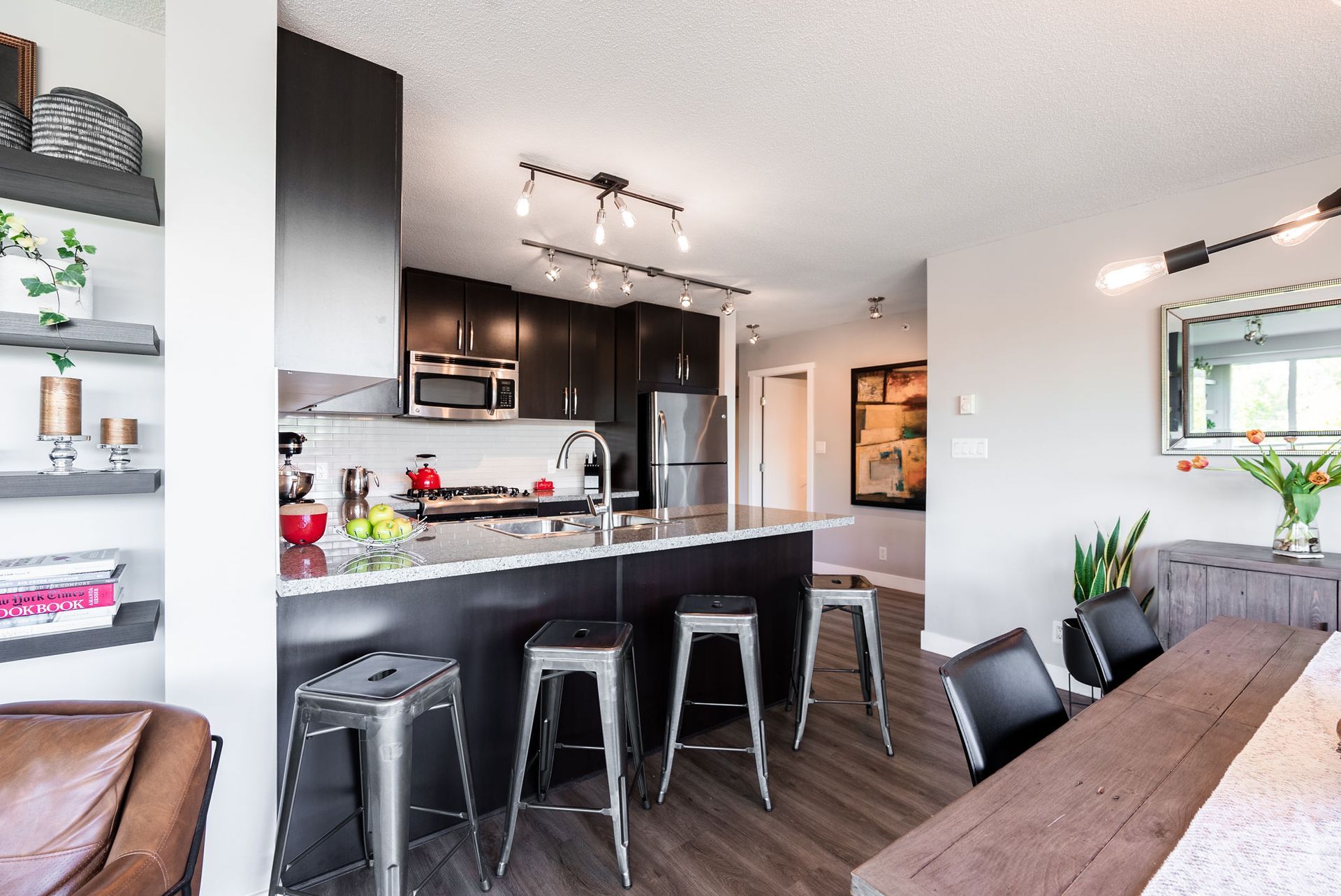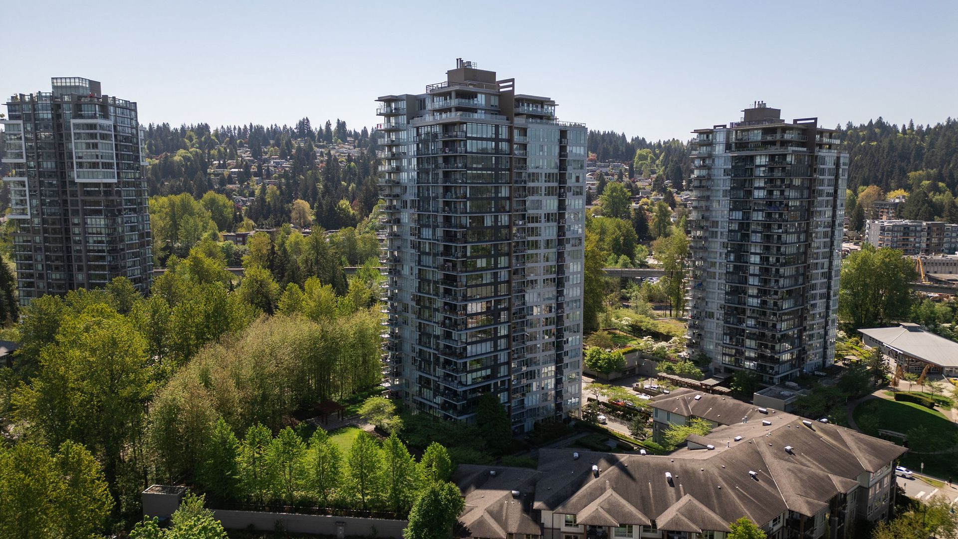 Perched on the outstretched, northern tip, this coveted 06 plan occupies the most desirable corner of Klahanie’s Nahanni tower, offering the rare kind of exposure you’ve waited for. Near full-height, wraparound NW & NE exposure windows deliver panoramic mountain views, treetop serenity, & big sky openness. Separated bedrooms & a beautifully executed open concept main living that blends flow & connectedness with clear distinction for spacious living, dining & cooking. Primary bedroom features double walk-in closets & ensuite that spoils - walk-in shower, stand-alone soaker, & double vanity. Continue the spoiling on your oversized, covered balcony or with the Canoe Club’s resort-like amenities: pool, gym, courts, guest suites & more! Steps to Suter Brook’s energy & conveniences. 2 parking.